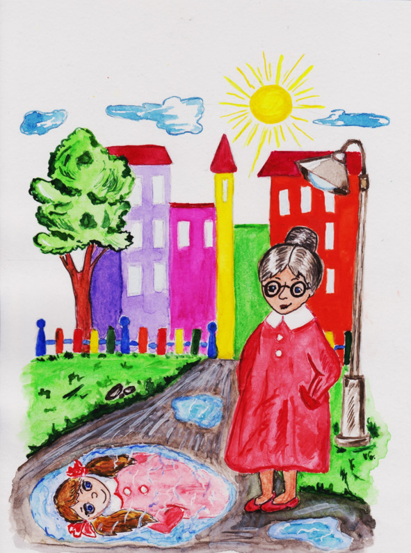 Пожилая женщина никуда не спешила. Подойдя к луже, она увидела в ней себя девочкой. Тогда они не боялась промокнуть и испачкаться. Вот и сейчас ей захотелось пройти по луже не опасаясь простудиться. К тому же, сегодня она надела босоножки, не ожидая дождя. Ей не нужно было переживать, что они будут долго сохнуть. И женщина осознанно и с удовольствием вошла в лужу. С каждым шагом она чувствовала себя всё моложе и моложе. Дождевая вода так приятно ласкала её ступни, что хотелось так ходить ещё и ещё.