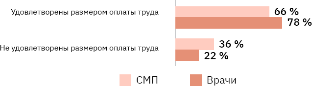 Рисунок 4. Ответы на вопрос «Удовлетворяет ли вас размер оплаты труда?», в % от числа ответивших в указанных группах[244]