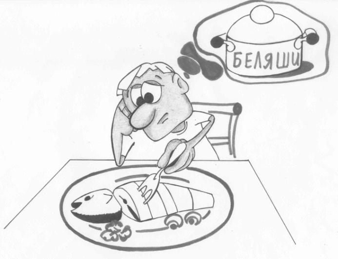 На обратном пути мороз немного умерил аппетит и Жрачкин стал подумывать, что, может, зря он так сорвался. Ведь по правилам поста рыбу надо есть только два дня из сорока девяти. Но дома эти мысли безропотно почили, как заплатившие налоги праведники. Там витал уже запах не просто беляшей, а надкусанных беляшей, причем надкусанных так, что из-под теста выглядывали серые кусочки фарша и лился светлый аппетитный мясной сок!