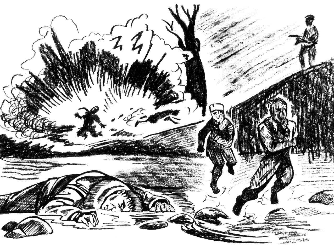 Утром батальоны выдвинулись на исходный рубеж. Солдаты с тюками ринулись в воду. Командир бегал вдоль берега с пистолетом и гнал их в атаку, крича: «Застрелю, сволочи, кто приказ не выполнит!..»