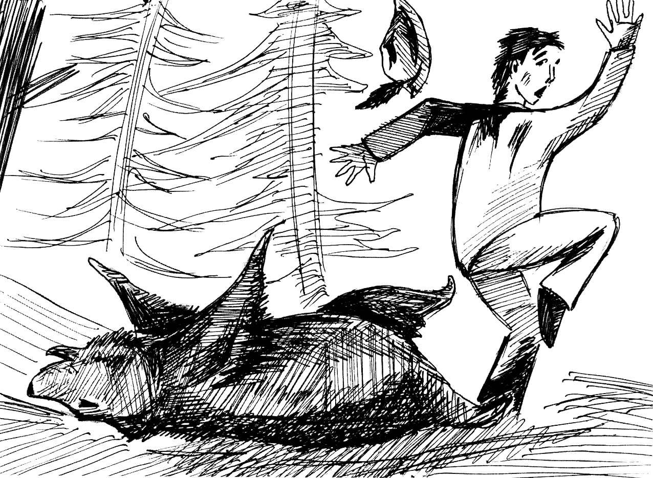 Озеро уже почти исчезло из виду. Вот и граница редкого леса, за которой начиналась большая вырубка, сплошь покрытая кочками, замшелыми пнями и трухлявыми стволами деревьев. До промысла оставалась всего сотня метров, когда краем глаза я уловил какое-то быстрое движение. «Собака», – подумал я, но на всякий случай замер и огляделся.