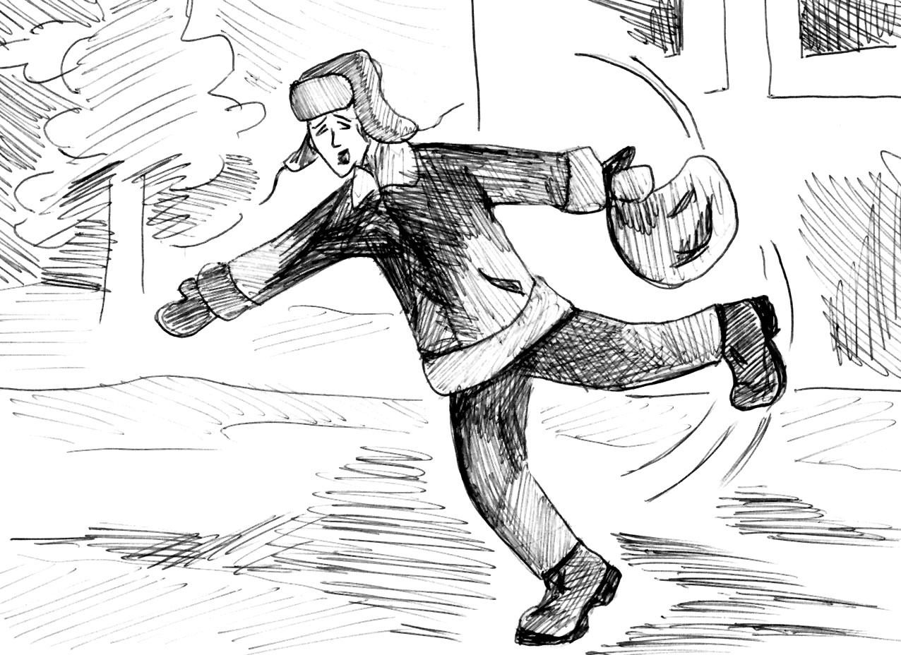 – Вот же каток, будь он неладен. Говорят, песка на весь город не хватает.