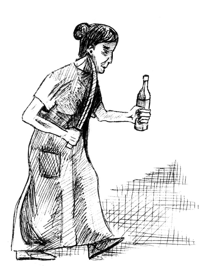 Вталкивая пробку внутрь бутылки, Прасковья даже достигла некоторого успеха.