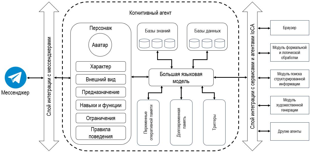 Шаги же алгоритма также представляют собой работу большой языковой модели, обращение к базе данных или базе знаний, чтение и запись информации в память, какие-то расчёты, запуск процедур, написанных на каком-либо языке произрастания, вызов внешних процедур и программ и даже обращение за помощью к другим искусственным когнитивным агентам. Ведь раз сам агент функционирует на платформе в среде интернета когнитивных агентов, то он может обратиться с запросом либо к какому-то конкретному анкету, либо бросить запрос на общую рабочую доску с указанием вознаграждения, и тогда те агенты, которые могут этот запрос выполнить, начинают торговаться за него.