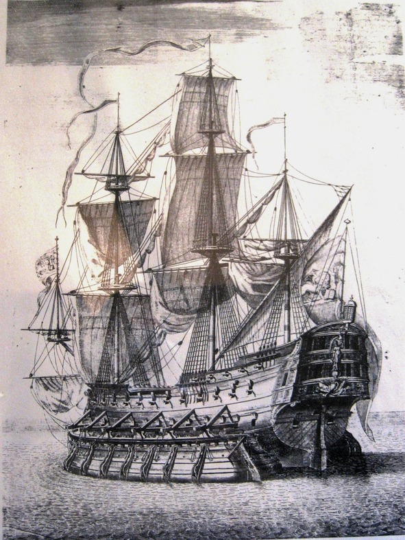 Линейный корабль «Goto Predtstinacia». Неизвестный художник. Графюра 17 века.