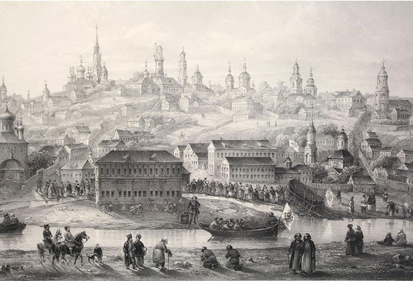 Воронеж вид с реки. Неизвестный художник. Гравюра 17 века.