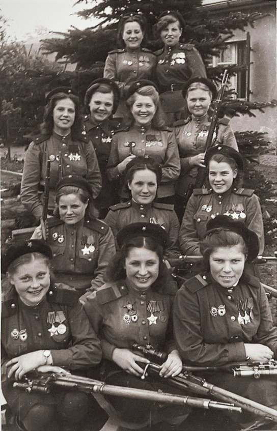Вот такие героини русского народа на этом фото и про этих девушек можно писать целую книгу. Первую медаль им давали только к третьему году войны за 50—70 убитых немцев.