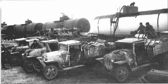 Машины заправляются ГСМ в ж.д. тупике. Фото хроники ТАСС.