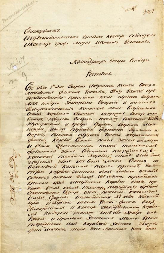 В Севастополе контр-адмирал Фёдор Ушаков свои корабли испытывал вдоль побережья и конечно выявилось много недостатков. Ранее к нему был прислан капитан 1 ранга Иван Тихонович Овцын, который исполнял должность флаг-капитана или по-другому начальника штаба. Контр-адмирал Ушаков, по полученным сведениям, собирался сделать нападение на Синоп, Самсун и Анапу. Он пишет письмо Потёмкину, не ставя в известность Войновича и жалуется, что ему не дают самостоятельно руководить эскадрой « Овцын написал письмо Войновичу о состоянии порта и эскадры, что не понравилось Ушакову, и контр-адмирал просит Потёмкина убрать от него этого начальника-штаба. немилости ко мне Войновича безпредельны оскорбительныя чувства лишают последнего здоровья и отнимают способность употребить ободрённый дух против неприятеля, всепокорнейше прошу не оставить милостью и покровительством».