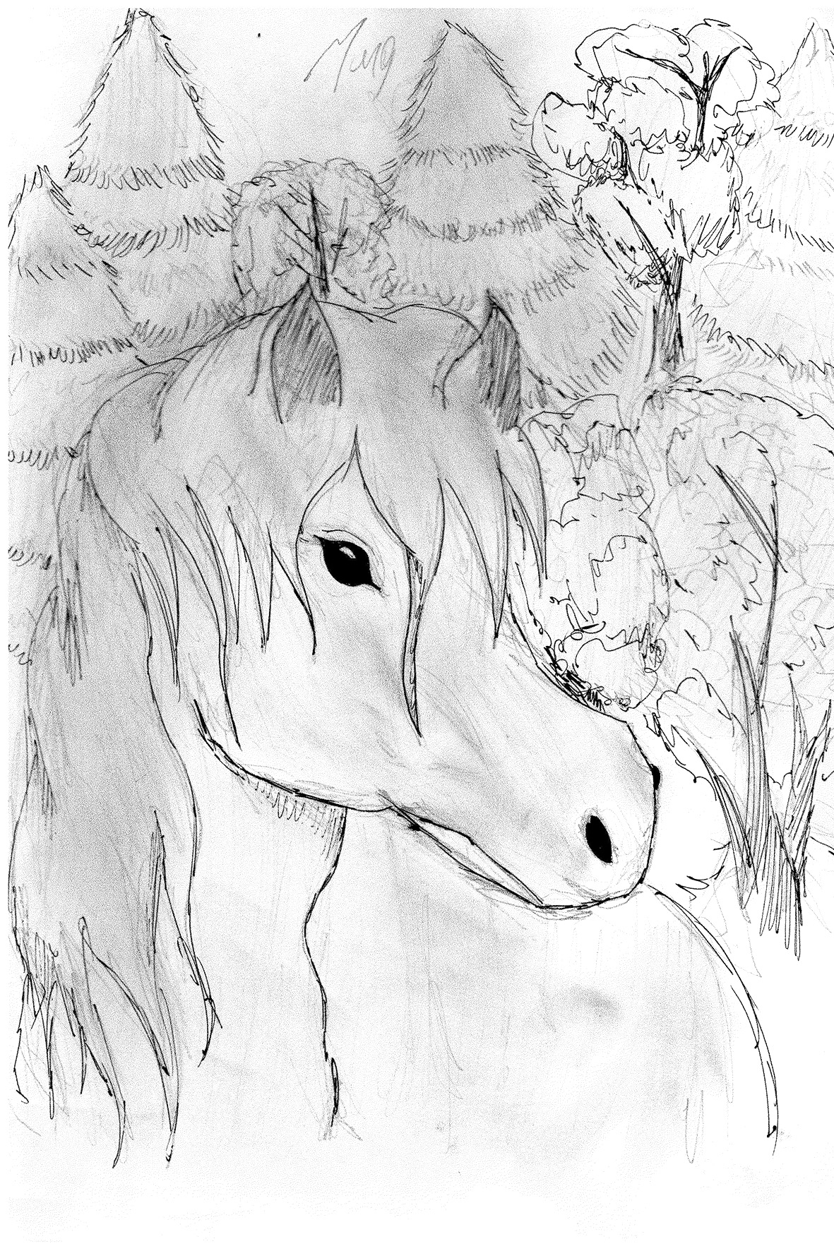 Дед запрягает коня. Видно по Орлику, что нашу идею он не поддерживает, но тактично помалкивает. К слову сказать, характер у него был отвратительный. Только недавно он сильно укусил моего отца за плечо. На месте укуса остались синяки и следы от зубов. Поэтому я старался с Орликом не спорить.
