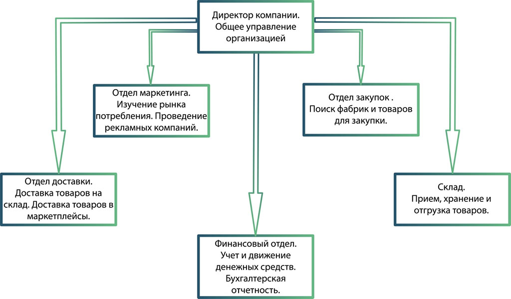 Давайте вернёмся к нашему примеру, где речь шла о компании, покупающей модную одежду за рубежом и продающую её затем на маркетплейсах. Какие функциональные действия необходимо осуществлять, чтобы достичь подобную цель?