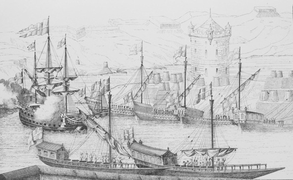 Русский флот под Азовом: 36-пушечный корабль «Апостол Петр» и галеры. Гравюра А. Шхонебека. 1699 г.