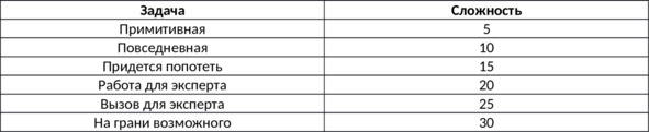 – Сложность проверки, исходя из цели героя и контекста ситуации, если она не определена правилами.