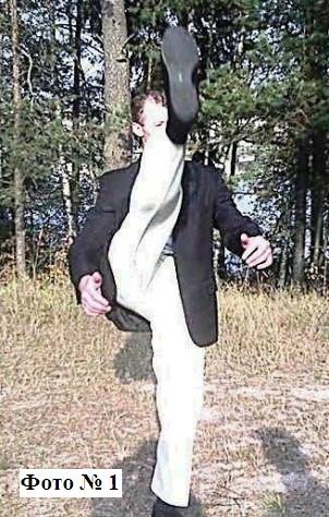 2). Для укрепления мышц ног регулярно приседайте раз по 30 (больше, опять же, нет смысла – вам же не нужен преждевременный износ суставов). И, безусловно, вам необходимо делать растяжку, без которой вы не сможете совершать удары ногами. Делать вы её можете посредством простых взмахов ногами вперёд, в стороны и назад (с постепенным увеличением высоты) Фото № 1. При этом помните, что вам следует стремиться к такому уровню растяжки ваших ног, при которой вы сможете совершить эффективный удар! В конце концов, вы же не балерина, для которой важна растяжка её ног исключительно для красоты их взмахов на сцене, а не в драке на улице…