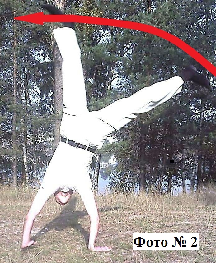 Одним из лучших способом растянуть мышцы для прямого шпагата, является так называемое «Колесо», это когда вам поочерёдно нужно вставать на руки, двигаясь в сторону. При этом, исполняя данное упражнение, старайтесь как можно шире раздвигать свои ноги в стороны Фото № 2. А так как этот способ растяжки достаточно эффективен, то во избежание болезненных ощущений потом, делать это упражнение лучше после других упражнений для растяжки, когда ваши мышцы ног будут уже разогреты.