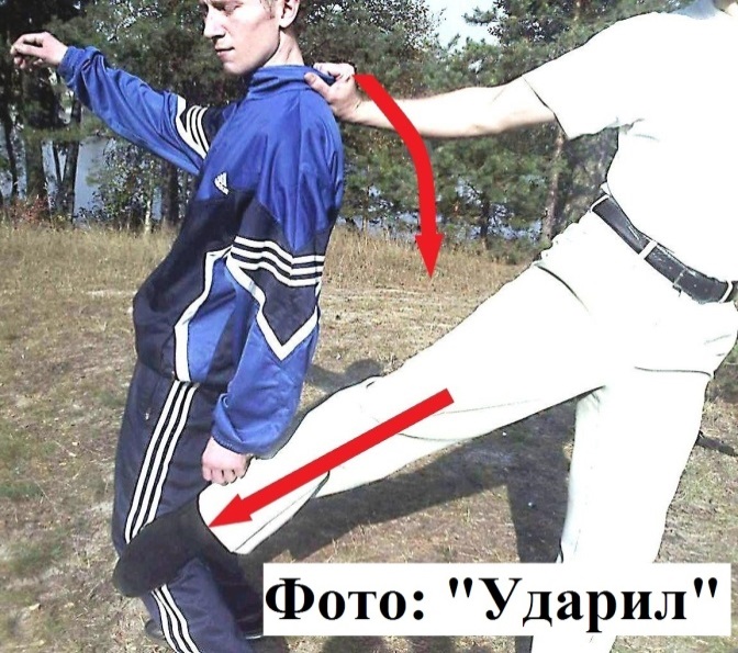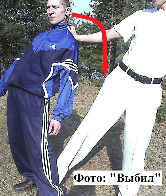 2). В ситуации же, когда вы находитесь от вашего противника сбоку (чуть позади него), вы можете выбить его ближнюю к вам ногу, одновременно таща его за одежду назад Фото: «Выбил».