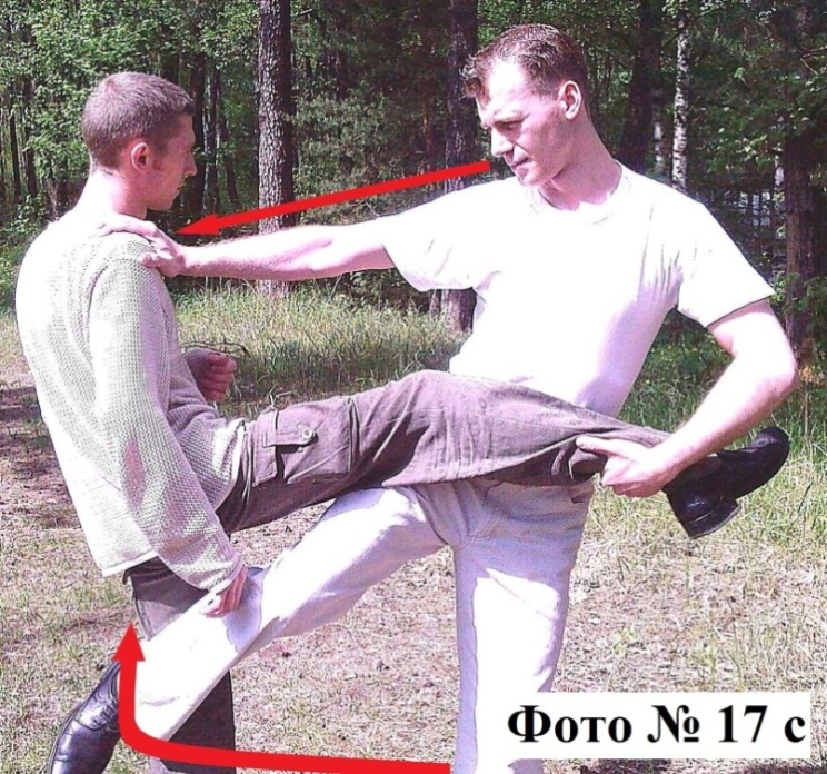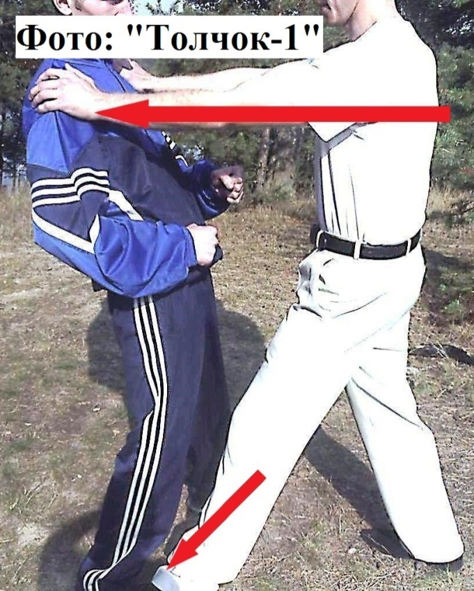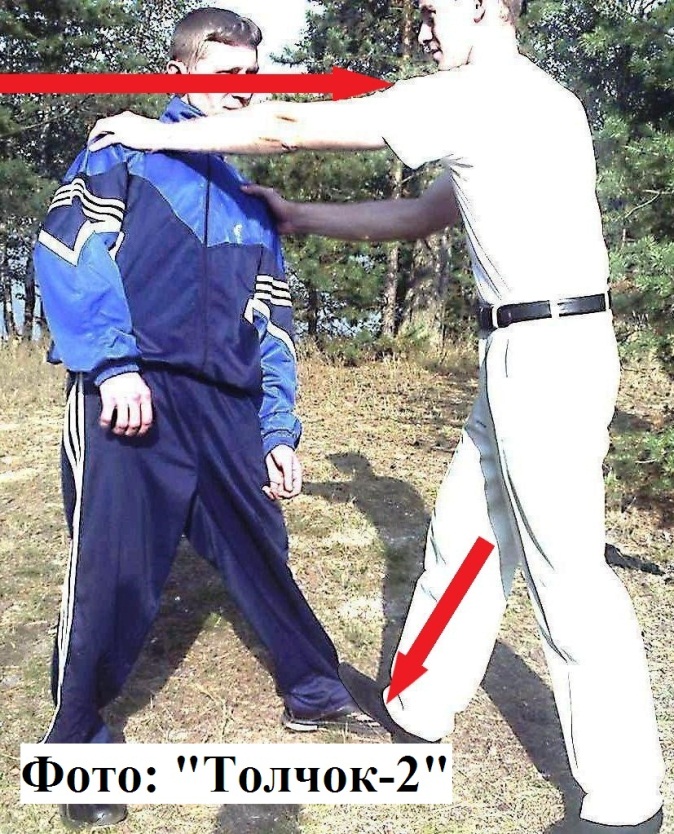 3). Но самый простой способ сбить человека с ног – это наступить ему на его опорную ногу и толкнуть его назад Фото: «Толчок-1».