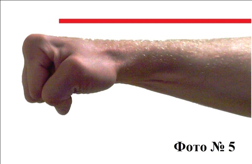 Из-за того, что большинство обывателей не имеют отработанного удара – они часто ломают себе запястья, когда бьют со всей силы, будучи уверенными в своих возможностях. Поэтому чтобы этого избежать, вам необходимо в момент удара напрягать своё запястье и держать его на одной прямой с кулаком Фото № 5.