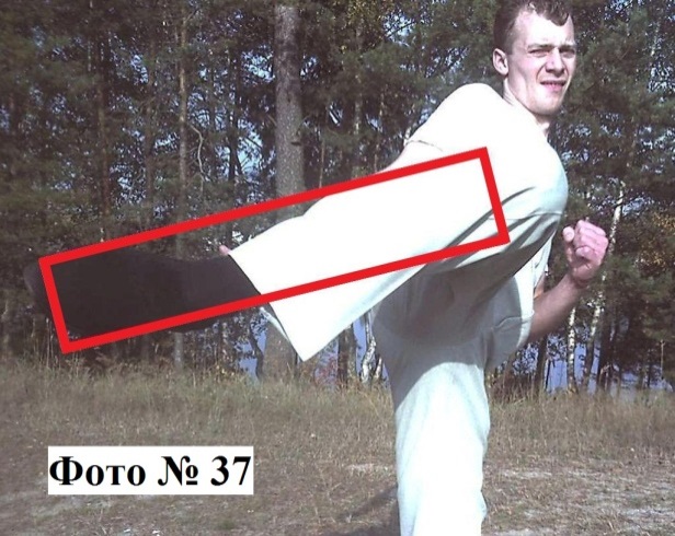 8). Маховой удар подъёмом стопы или голенью по дуге, совершается вами в корпус или голову противника Фото № 37.