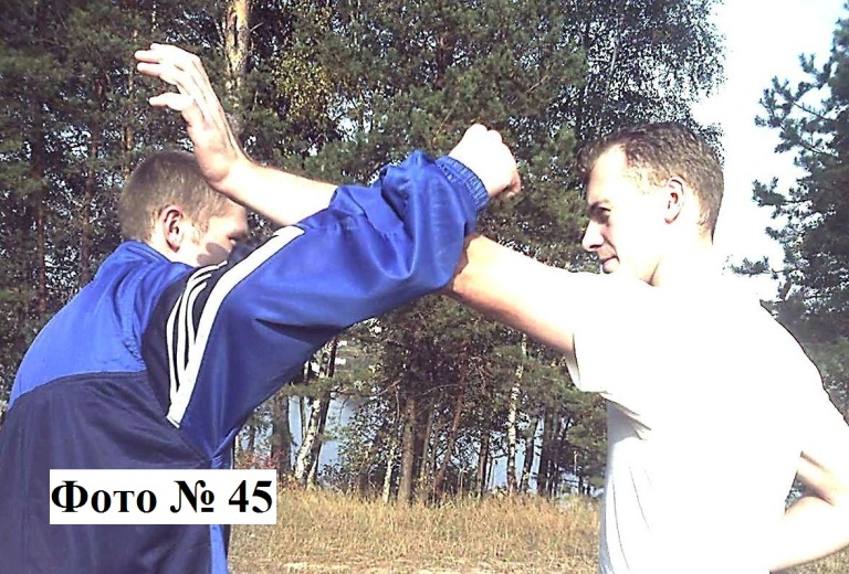 1). Например, почти любой боковой удар рукой можно отразить в самом начале совершаемого удара/размаха (изнутри наружу) Фото № 45.