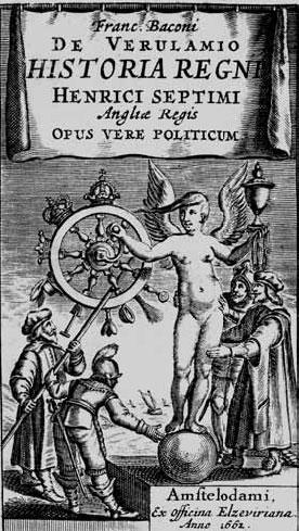 Несколько иначе этот спор Фортуны и Мудрости (разрешенный, конечно же, в пользу последней) представлен на программной гравюре, украшающей фронтиспис «Истории правления Генриха VII» Фрэнсиса Бэкона в амстердамском издании 1662 г. Здесь Фортуна с ее Колесом и дарами балансирует на шаре, застывшем на самом краю прямоугольного постамента. Чтобы богиня не упала, а шар не скатился вниз, двое солдат и пышно одетый вельможа поддерживают своенравную даму, тогда как мудрец останавливает вращение Колеса, зафиксировав его продетой сквозь палкой. Аллегория эта была призвана напомнить читателям, что Генриху VII удалось положить конец междоусобной войне Алой и Белой Розы и вызванной ей смене династий Йорков и Ланкастеров на английском престоле, принеся наконец стабильность стране.