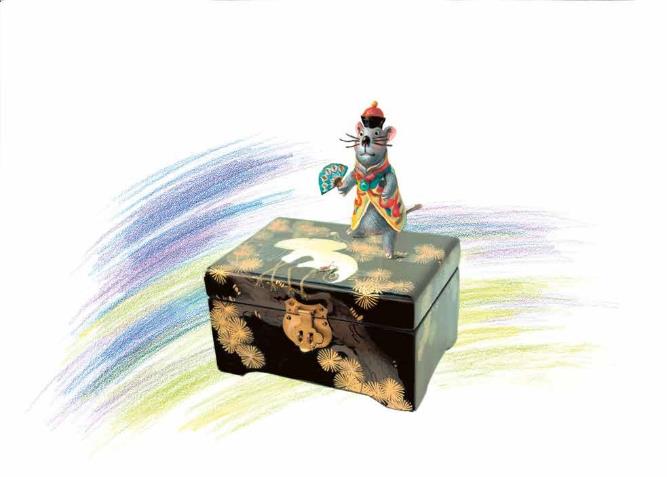 Она на цыпочках подошла поближе, чтобы заглянула внутрь, и вскрикнула от неожиданности – ах! – из чана выбрался мышонок и уселся на самом краю! Но это был необычный мышонок! На нем был расшитый цветными узорами халат, а на голове – шапочка. В руке он держал золотой веер и гордо восседал на красной подушечке. Красавица Ли решила, что она спит и даже ущипнула себя за руку. Стало больно, и она поняла, что нет – не спит.