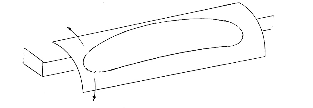 Формуя пенопласт поперёк волокон можно создавать выпуклые профили типа Г-417 для простейших моделей (планеров F-1-N , рез. мотор) и паркфлаеров. Или плосковыпуклый , объёмный профиль ( модель Як-23 см фото). Или симметричный, объёмный профиль для электричек.