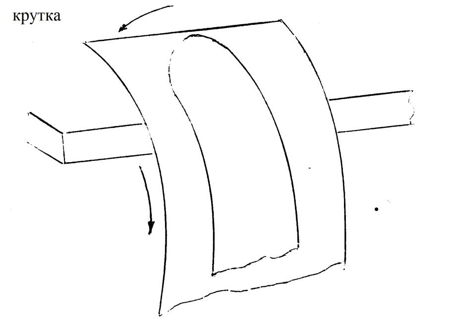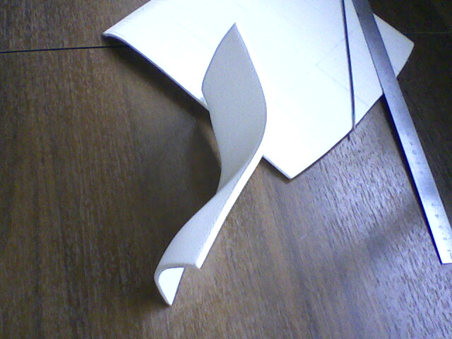 Собственно Метод Протяжки под Давлением заключается в том, что вы придавливая пенопласт рукой или другим подходящим предметом к искривлённой поверхности (угол стола и др.) протягиваете его, придавая нужную конфигурацию. Если край стола острый, лучше прокладывать между столом и пенопластом лист ватмана.