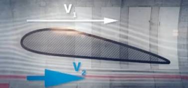 При поступательном движении самолёта крыло обтекается потоком воздуха. Из за особой формы сечения крыла создаётся разность давления под и над крылом и возникает подъёмная сила. Над крылом скорость потока воздуха увеличивается , под крылом – уменьшается . В соответствии с законом Бернулли это приводит к появлению разности давлений под и над крылом , т. е. к созданию подъёмной силы .