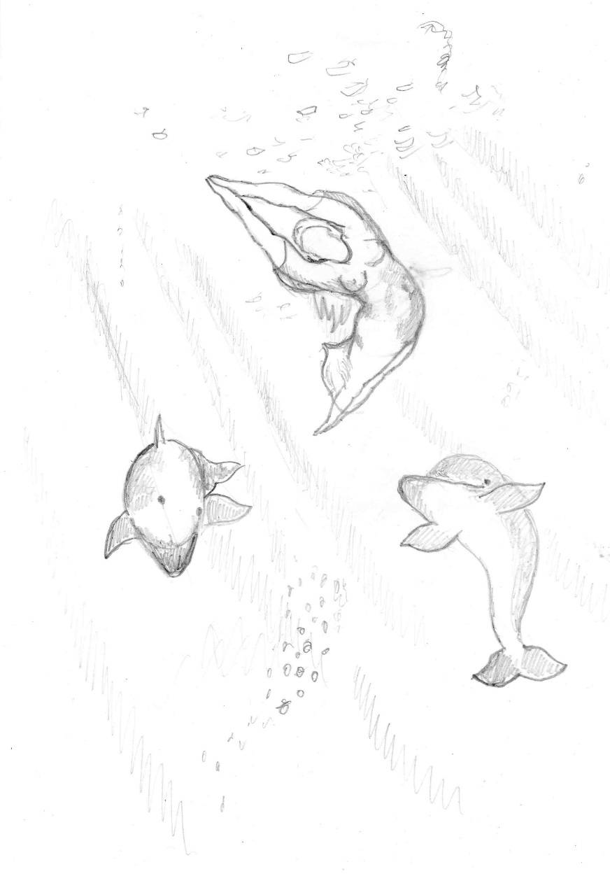 Дельфин в ответ пискнул и замолчал. Таким образом они уплыли далеко от берега. И тут появилась целая стая дельфинов, которая приближалась к ним. Они устроили целый хоровод вокруг Стэллы, стрекотали и били фонтанами из дыхалец. Тут Стэлла почувствовала, что море приглашает ее в свои глубинные объятия. Стэлла отпустила дельфина и нырнула под воду. Это была ее вторая родина, вторая стихия. Она плыла и плыла в глубину. Она плыла в общем-то по-простому, помогая руками. И вот, Стэлла почувствовала в теле невероятную гибкость и подвижность.