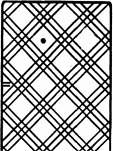 Крапление карт чернильными точками выполняется предварительно, задолго до игры. На каждой карте ставят две точки. Одна точка несёт информацию о номинале карты, вторая точка – о масти. Цвет чернил должен быть таким же, что и цвет крапа карты, чтобы не особенно выделяться на фоне линий рубашки. Узкий верхний край карты со стороны крапа мысленно делится на четыре вертикальные части. Нижний край карты должен быть всегда свободен и не принимать никакого участия в краплении. Точка, поставленная в первой слева части, говорит о том, что масть этой карты – пики, рис. 18: