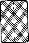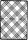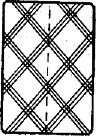При этом, если под рисунком написано: «Три больших целых ромба по вертикали», то само собой подразумевается, что большие ромбы соединены между собой двумя маленькими ромбами, о которых ничего не сказано. Маленький ромб – это пересечение двух полосок, состоящих из трёх линий каждая. Одна, например, полоска из шести полос (или из пяти) приблизительно параллельна одной диагонали карты, а вторая – второй диагонали карты. Пересекаясь между собой, пять (а иногда шесть) полос с такими же по другой диагонали образуют около пятнадцати маленьких ромбов. Описываемая система опознавания карт по крапу допускает отклонение цепочки ромбов, по которым определяется номинал или масть карты, от центральной вертикальной линии или от центральной горизонтальной линии в пределах одного большого ромба, рис. 40–51. Для удобства пользования реальной естественной системой подбора крапа карт приведены таблица 1 – номиналы карт и таблица 2 – масти карт.