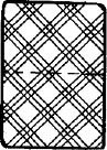 Рассмотрим систему координат, изображённую на рис. 28.Вверху четыре масти карт. Правый, длинный, бок карты также разбивают мысленно на зоны для размещения номиналов карт (рис. 28). Для колоды в тридцать две карты применяют восемь зон, от туза до семёрки включительно, а для колоды из пятитидесяти двух карт используют тринадцать зон, от туза до двойкивключительно. Левая половина карты не задействована. Это сделано для того, чтобы во время игры можно было легко восстановить систему координат мысленно при перевёрнутойкарте, то есть когда верхний край карты находится внизу, а нижний – вверху. Не маркированная половина крапа карты всегда должна находиться слева. На рис. 28 изображена точка на крапе карты, координаты которой показаны при помощи пунктира. Если по горизонтальной оси мысленно провести линию до пересечения с одной из зон правого края, то есть номиналов, то получится валет. Вторая линия проводится от точки вверх до пересечения с одной из зон верхнего края карты, получается – трефы. Итак, здесь точка означает: валет треф. На рис. 29 валет треф показан на реальной карте.