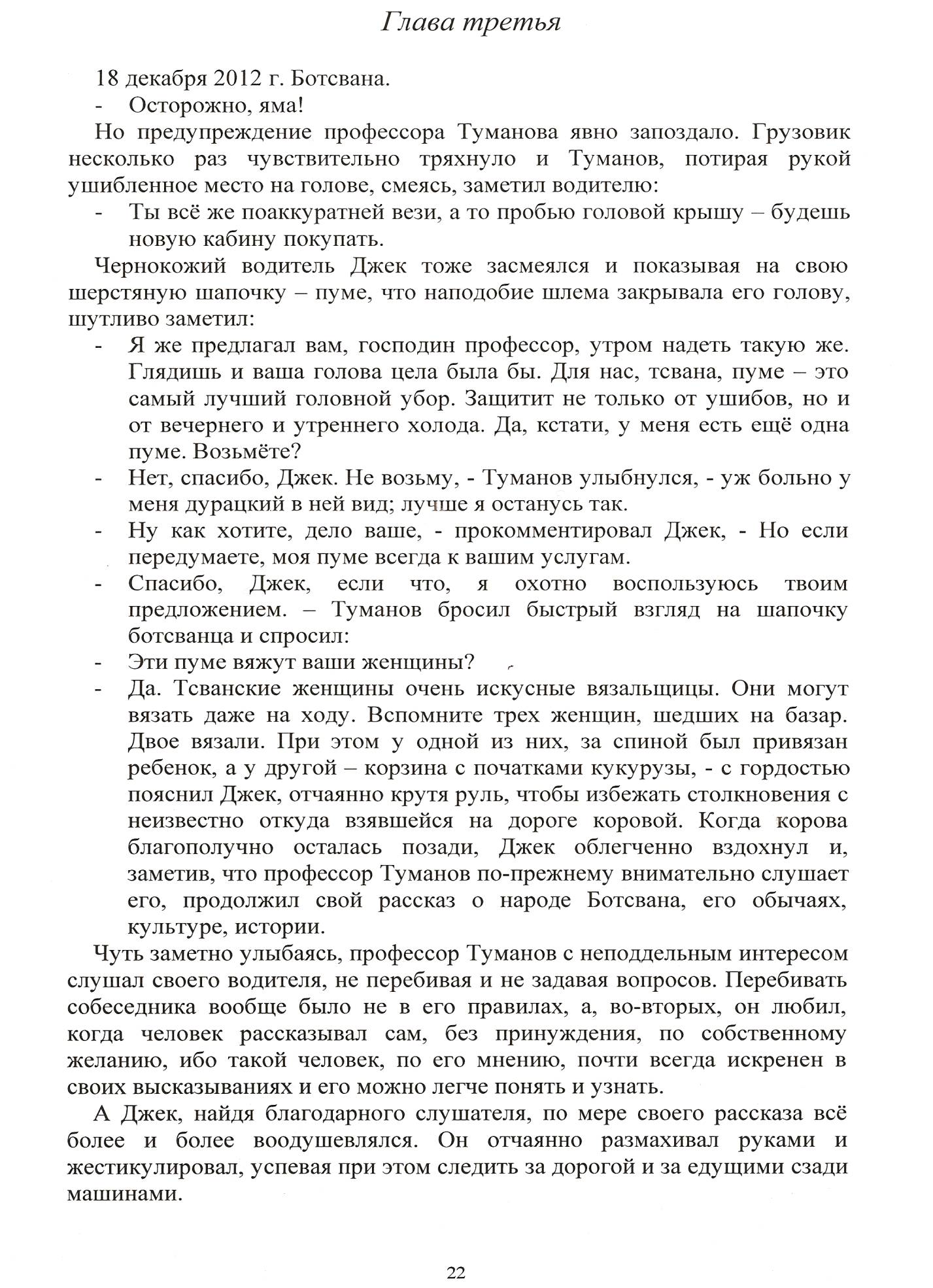 Однако многое из рассказа Джека Туманов уже знал. Он не в первый раз был в Ботсване, да и, к тому же, успел перед поездкой изучить пару справочников. И теперь его тренированная память, по мере рассказа водителя, послушно выдавала информацию о стране в сжатой, в виде коротких справок, форме.