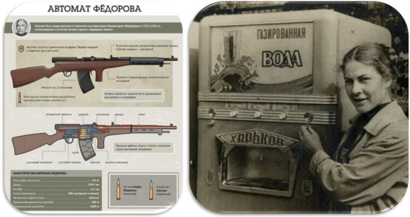 АВТО-М-А-Т – автоматически мыслит основой тверди. Если говорить об оружии, то первый в мире автомат был создан русским конструктором Владимиром Фёдоровым в 1916 году, который использовался во время Первой мировой войны. Во времена СССР использовались автоматы газированной воды, которые за монеты в автоматическом режиме наполняли стаканы газированной водой (см. «АВТО»).