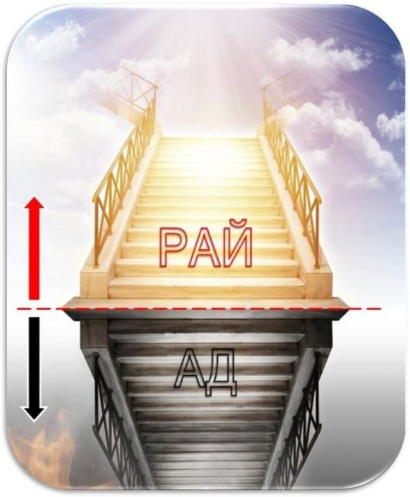А-Д – первооснова добра. Предки русского народа считали, что «Ад» (согласно ведических знаний это мир «НАВИ») – это место, где среди негативных энергий зарождается первый свет доброй человеческой души. Далее душа через земное воплощение может становиться просветлённой, одухотворённой духом самосознания человека «Я» и не возвращаться в «Ад» (на Солнце), а объединяться со своим духом и перемещаться в «Рай» (согласно ведических знаний это мир «СЛАВИ» и мир «ПРАВИ»). Либо при духовной деградации возвращаться на Солнце и продолжать выгорать разрушительными энергиями в «Аду» (см. «РАЙ», «ЗЛО» и «ДОБРО»).