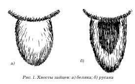 Заяц-русак самый крупный из семейства зайцев, его длина может достигать 70 см, а вес – 7 кг. В среднем же взрослый русак весит 4–5 кг. Уши у него длиннее, чем у беляка (100–120 мм) и более длинный хвост, имеющий остроконечную форму (рис. 1).