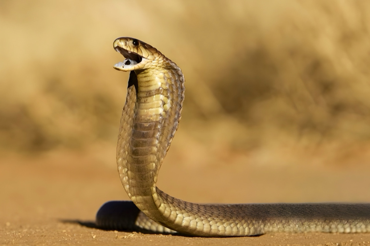 Тем временем рептилия то быстро ползла вперед, вытянув во всю длину по земле свое блестящее черно-зеленое тело, то прямо на ходу сворачивалась в кольцо-канат, над краем которого поднималась злая головка с мешком чешуйчатой кожи на шее, вздувшимся в виде капюшона – отличительным признаком кобры.