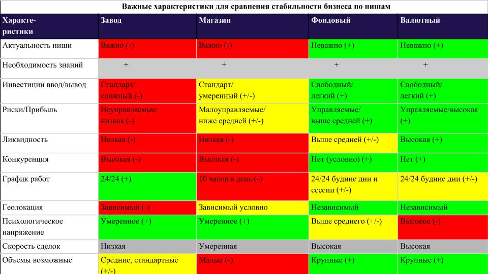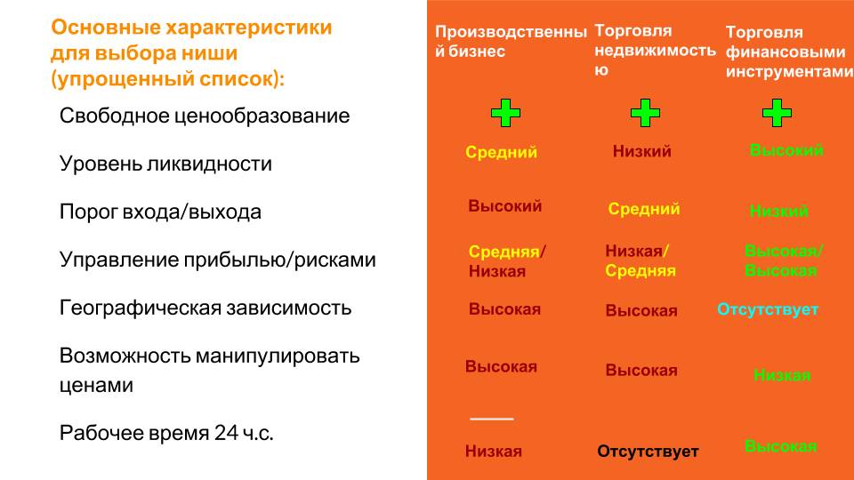 Подводя итоги изучения характеристик рынка, рассмотрим, каким образом они влияют на эффективность бизнеса по разным нишевым типам.