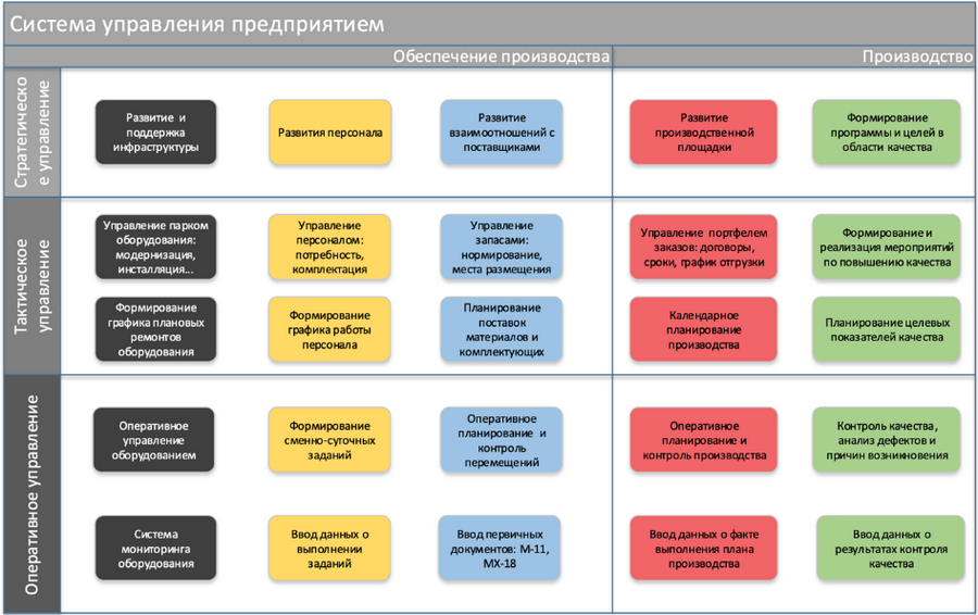 Рисунок 1.2 – Задачи по уровням управления и бизнес-процессам