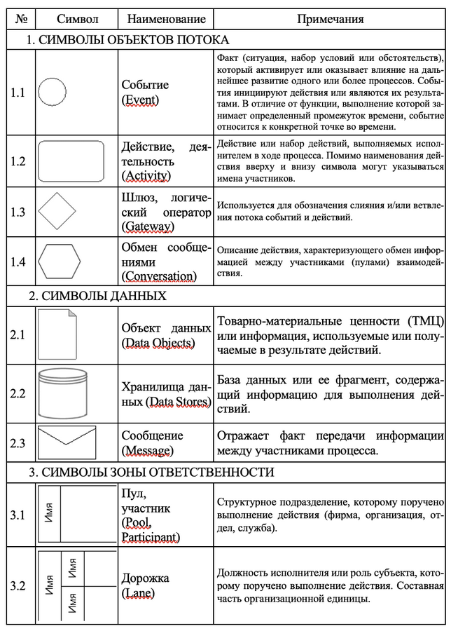 В табл. 1.2 приведены символы нотации BPMN и их базовое изображение [39].