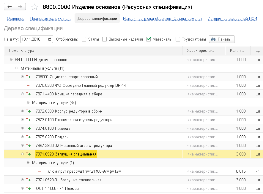 Рисунок 1.8 – Пример представления древовидной спецификации в 1С ERP