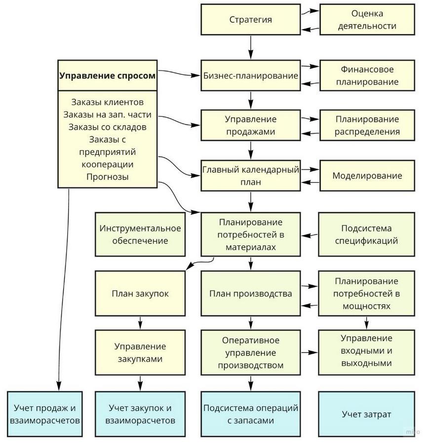 Важнейшая функция MRPII состоит в обеспечении всей необходимой информацией тех, кто принимает решения в сфере управления финансами, включая лучшие практики предыдущих этапов развития автоматизированных систем: