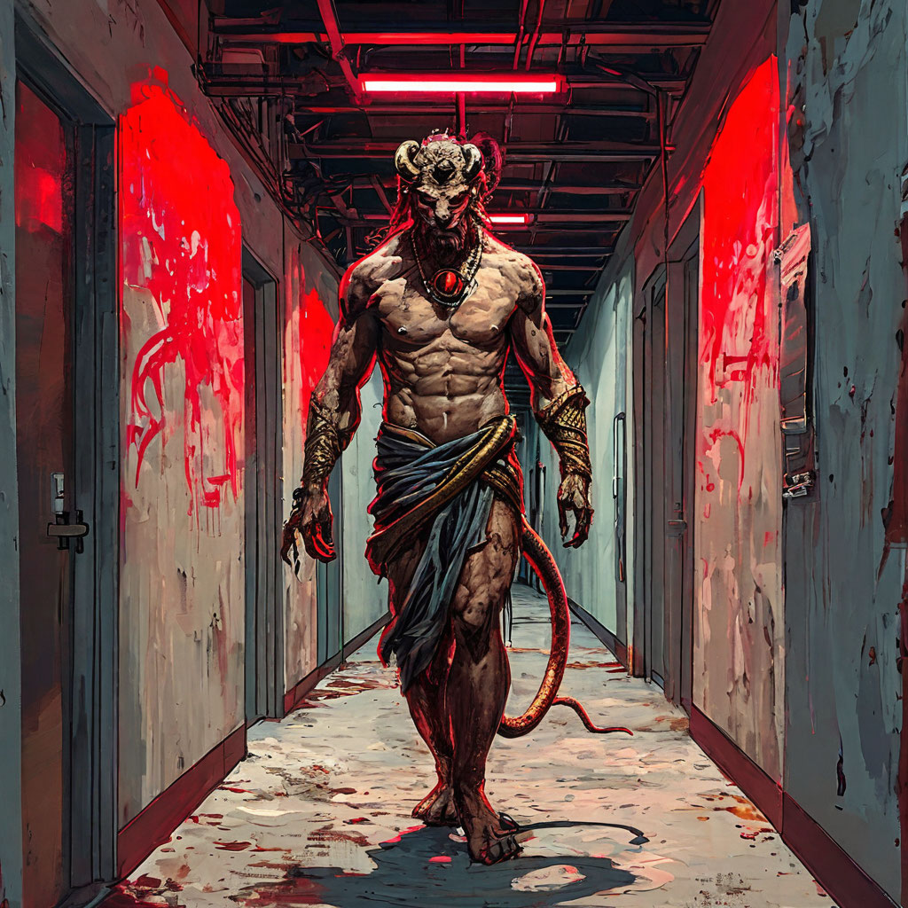 Тут ветер в коридоре затих. Пролетавшая мимо женщина рухнула на пол. У неё не было руки. Кровь из обрубка хлестала на пол. В коридоре послышалась громоподобная поступь и тяжёлое дыхание неизвестного существа. Безрукая женщина подняла голову, увидела то, что к ней приближается и истошно заорала. Милана поняла, что это не к добру и ей самой надо уходить пока не поздно. Даже не хотелось знать, кто там идет. Преследуемая воплями женщины за спиной, Милана полезла в тёмный колодец, воняющий гнилью.