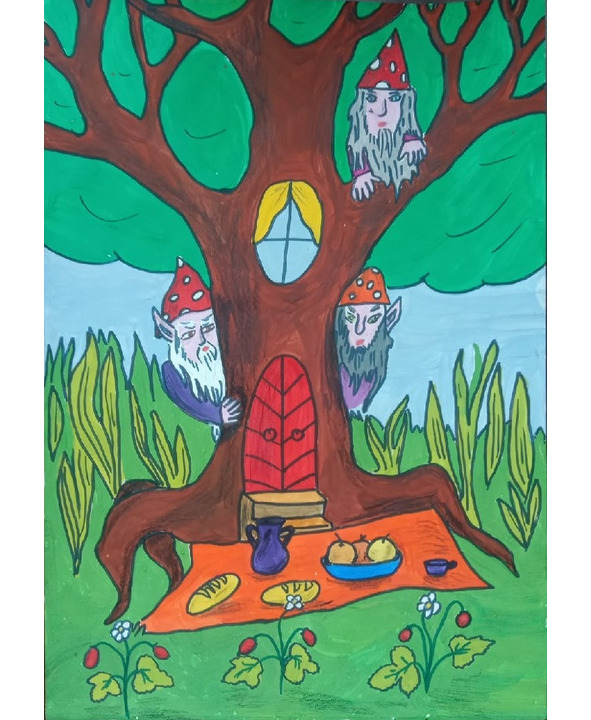 – Они были похожи на маленьких старичков. Это были карлики с красными носами и длинными бородами. Они очень любили отрывать у мухоморов шляпки и носить их вместо головного убора. Но это не самое страшное. Хуже всего то, что они были очень злы и ненавидели всех других существ. Особенно они ненавидели людей, а именно жителей нашего городка.