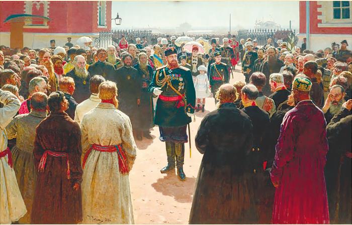 Прием волостных старшин Александром III во дворе Петровского дворца в Москве