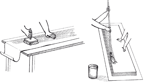 Рис. 11. Складывание обойного полотна для пропитывания клейстером