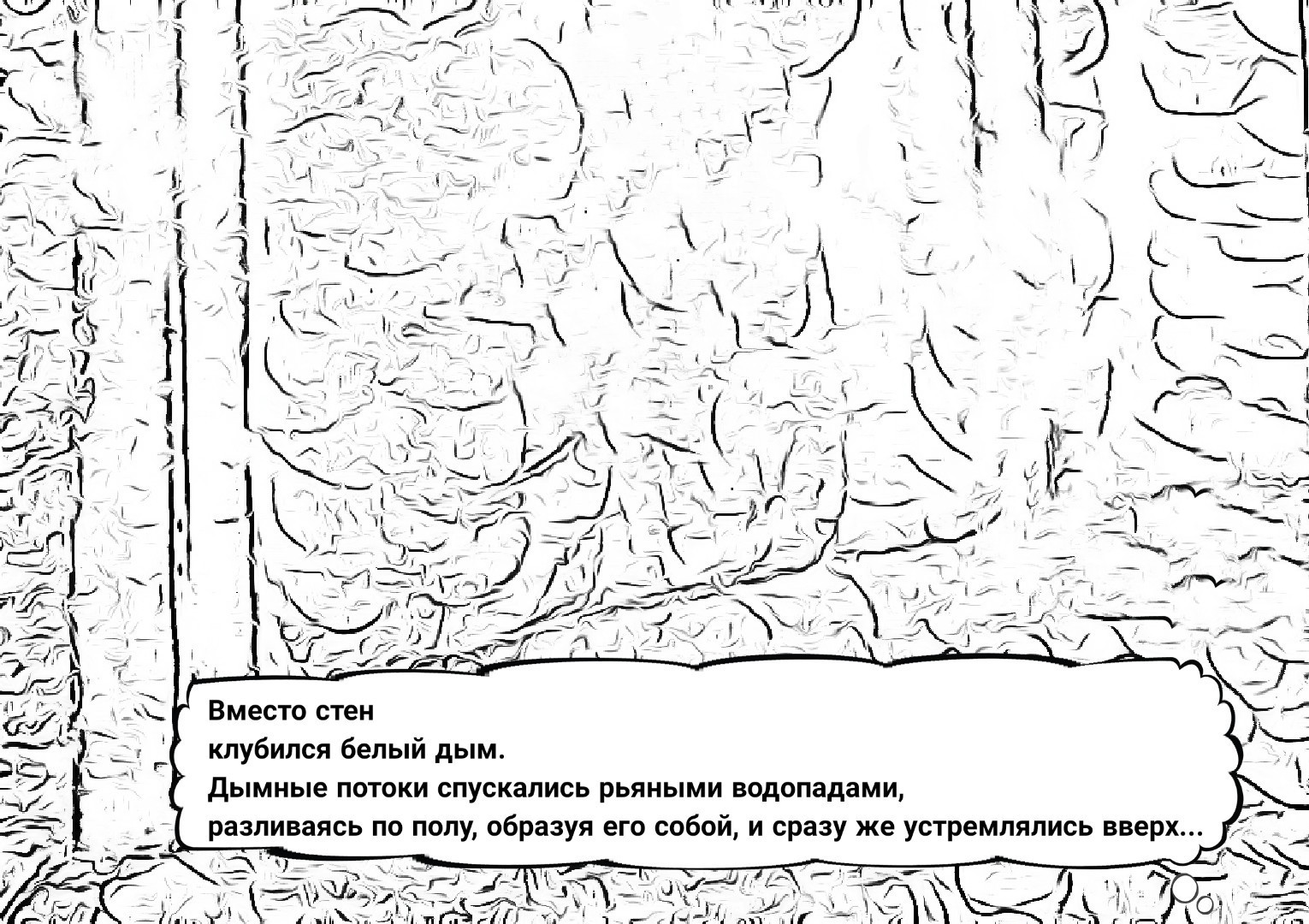 Во дворце было пустынно и неуютно, как бывает в залах официальных зданий, где все, как правило, или засыпают или цепенеют, вместо стен клубился белый дым. Дымные потоки спускались рьяными водопадами, разливаясь по полу, образуя его сразу же устремлялись вверх. Потолка там не было вовсе, а под прозрачными, невесомыми сводами дворца сами по себе летали белые подушки, на которых восседали боги Яви.