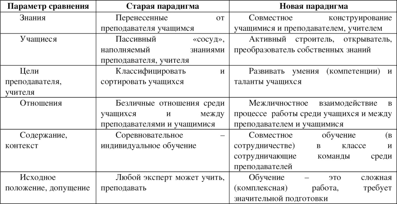 Сравнение старой и новой парадигм в образовании10