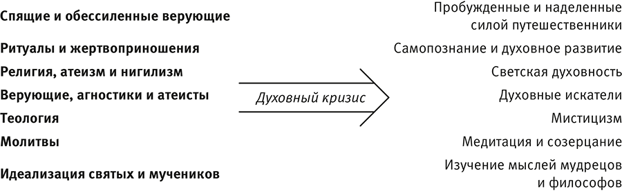Под влиянием таких философов-экзистенциалистов, как Фридрих Ницше, Жан-Поль Сартр, Альбер Камю, Эмиль Чоран и Федор Достоевский, я пришел к категорическому выводу, что жизнь бесцельна и бессмысленна. Именно в то время моей новой доктриной стала надменность. Я смеялся над книгами о самопомощи и безапелляционно осуждал авторов, специализировавшихся на духовности. Я избавился от своих религиозных убеждений, но впитал убеждения противоположные, равным образом ограничивающие и недейственные в том, что касается полноценной жизни.